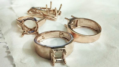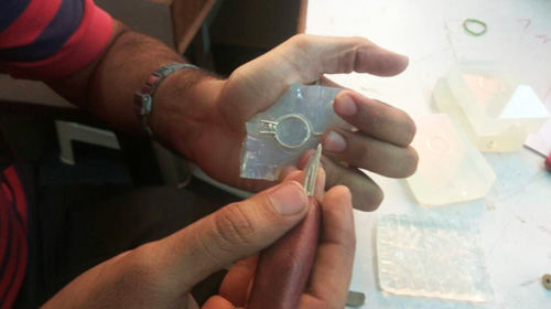 Mould making is an integral part of the production process. It helps in creating multiple pieces of jewellery of the same design. These designs remain protected and embedded in the mould forever and it is possible to create replicas of the same in future. There are different types of materials used for mould making like natural rubber, silicone and metal. The method used for mould making is called "Vulcanizing".